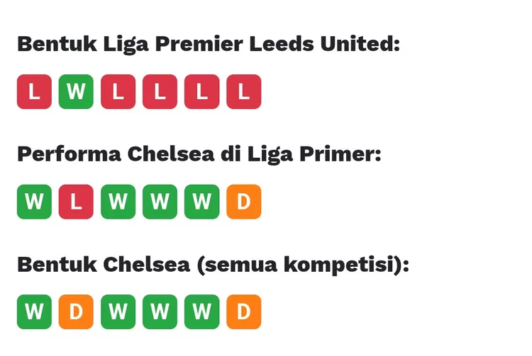 Rekor tuan rumah dengan dua kemenangan, dua kekalahan, dan dua hasil imbang di Elland Road musim ini juga tidak buruk, dan kemenangan terakhir The Whites atas Chelsea terjadi pada pertemuan terakhir mereka di stadion ini pada tahun 2022 - kemenangan gemilang 3-0 atas tim Thomas Tuchel.