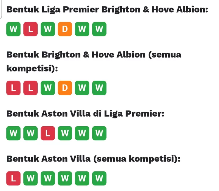 Namun, rekor mereka melawan Brighton baru-baru ini, dengan tiga kemenangan dalam lima pertemuan terakhir mereka, menunjukkan bahwa Villa difavoritkan untuk pulang dengan poin maksimal.